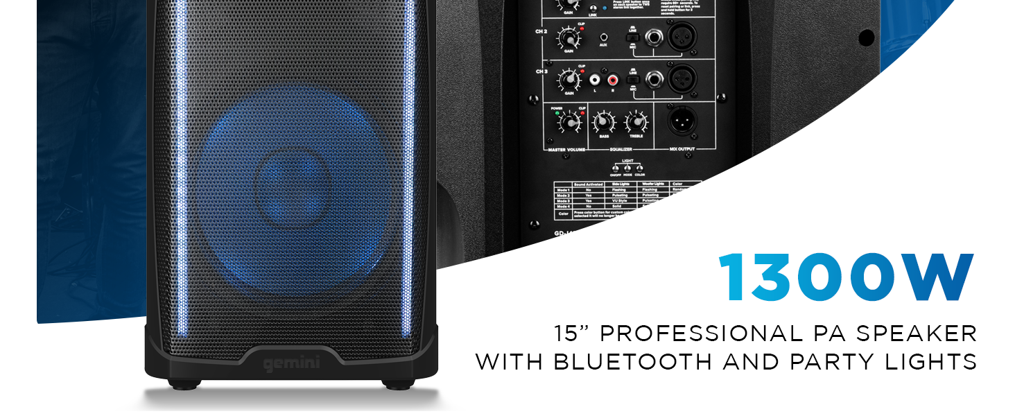 Gemini GD-L215PRO: 1300W Bluetooth DJ PA Speaker with LED Party Lights, 15” Woofer, 3-Channel Mixer & TWS Link – Powerful Sound for DJs, Parties & Events